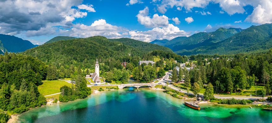 Durch Wälder und Wiesen entlang der Sava Bohinjka – einem klaren, smaragdgrünen Fluss, der sich durch das Tal im Triglav Nationalpark schlängelt. Radeln Sie weiter ins Herz des Nationalparks und erreichen den Bohinjer See, den größten natürlichen See Sloweniens.