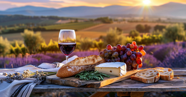 Der malerische Südosten Frankreichs mit Weinbergen, Olivenhainen, Pinienwäldern und Lavendelfeldern.